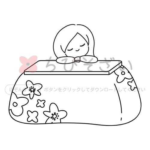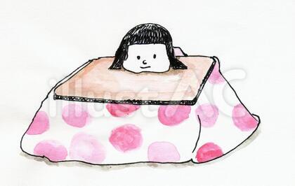 コタツで眠る、お昼寝する、一休みする女の子のイラストです。