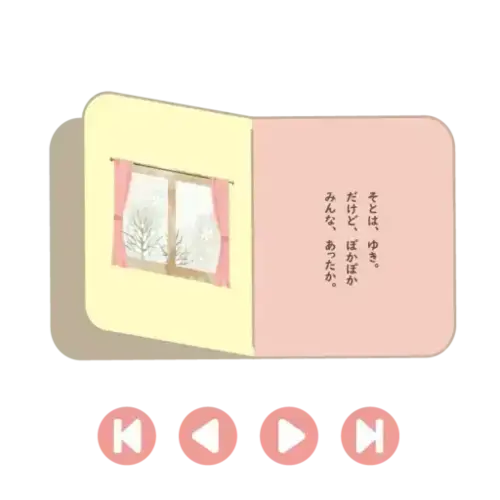 絵本のサイズによって、挿絵や文章の配置が異なる場合がございます。また、手軽に印刷できるよう背景を無くすなど、ウェブ絵本とはデザインが異なります。あらかじめご了承ください。