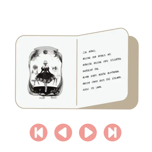 絵本のサイズによって、挿絵や文章の配置が異なる場合がございます。また、手軽に印刷できるよう背景を無くすなど、ウェブ絵本とはデザインが異なります。あらかじめご了承ください。