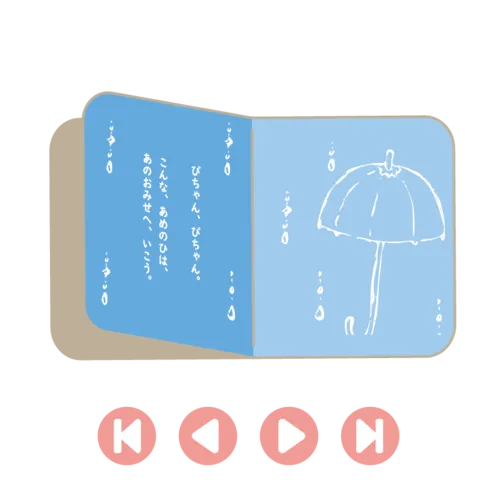 絵本のサイズによって、挿絵や文章の配置が異なる場合がございます。また、手軽に印刷できるよう背景を無くすなど、ウェブ絵本とはデザインが異なります。あらかじめご了承ください。