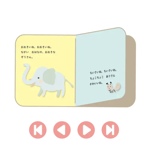 絵本のサイズによって、挿絵や文章の配置が異なる場合がございます。また、手軽に印刷できるよう背景を無くすなど、ウェブ絵本とはデザインが異なります。あらかじめご了承ください。