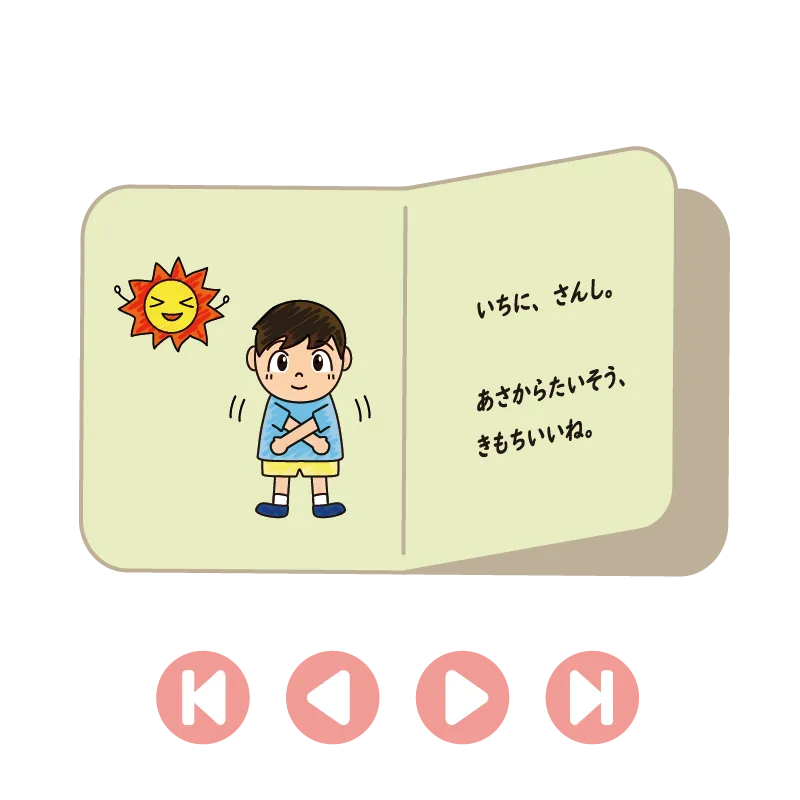 絵本のサイズによって、挿絵や文章の配置が異なる場合がございます。また、手軽に印刷できるよう背景を無くすなど、ウェブ絵本とはデザインが異なります。あらかじめご了承ください。
